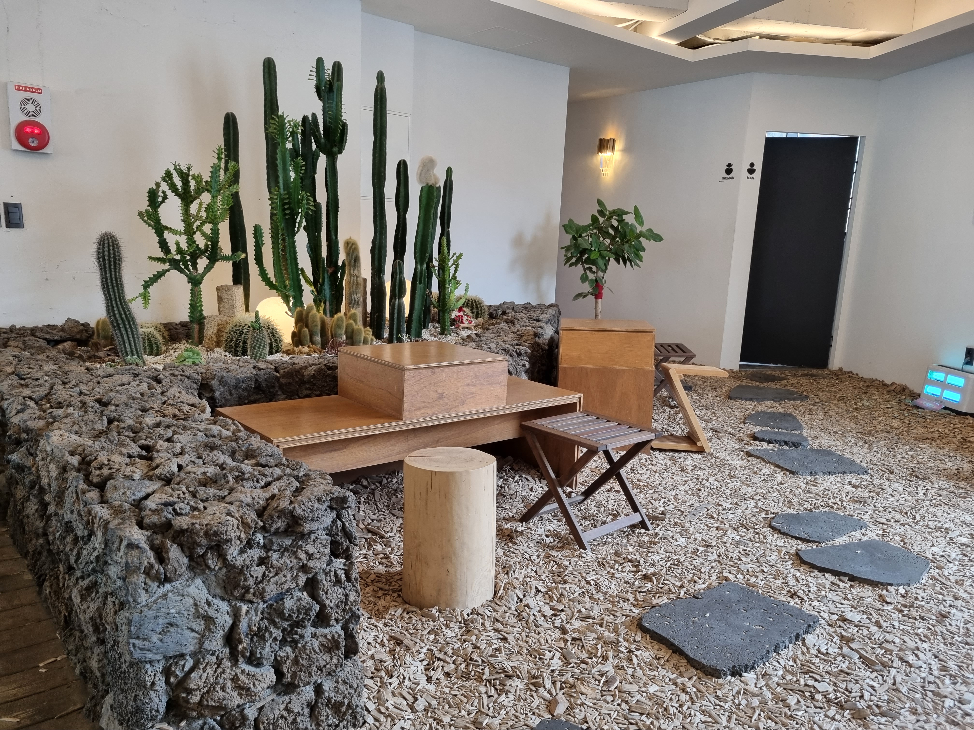 3F의 느낌이에요. 2층과 3층 모두 바닥이 나무 조각으로 되어있어요. 전체적으로 건조한 사막의 분위기예요