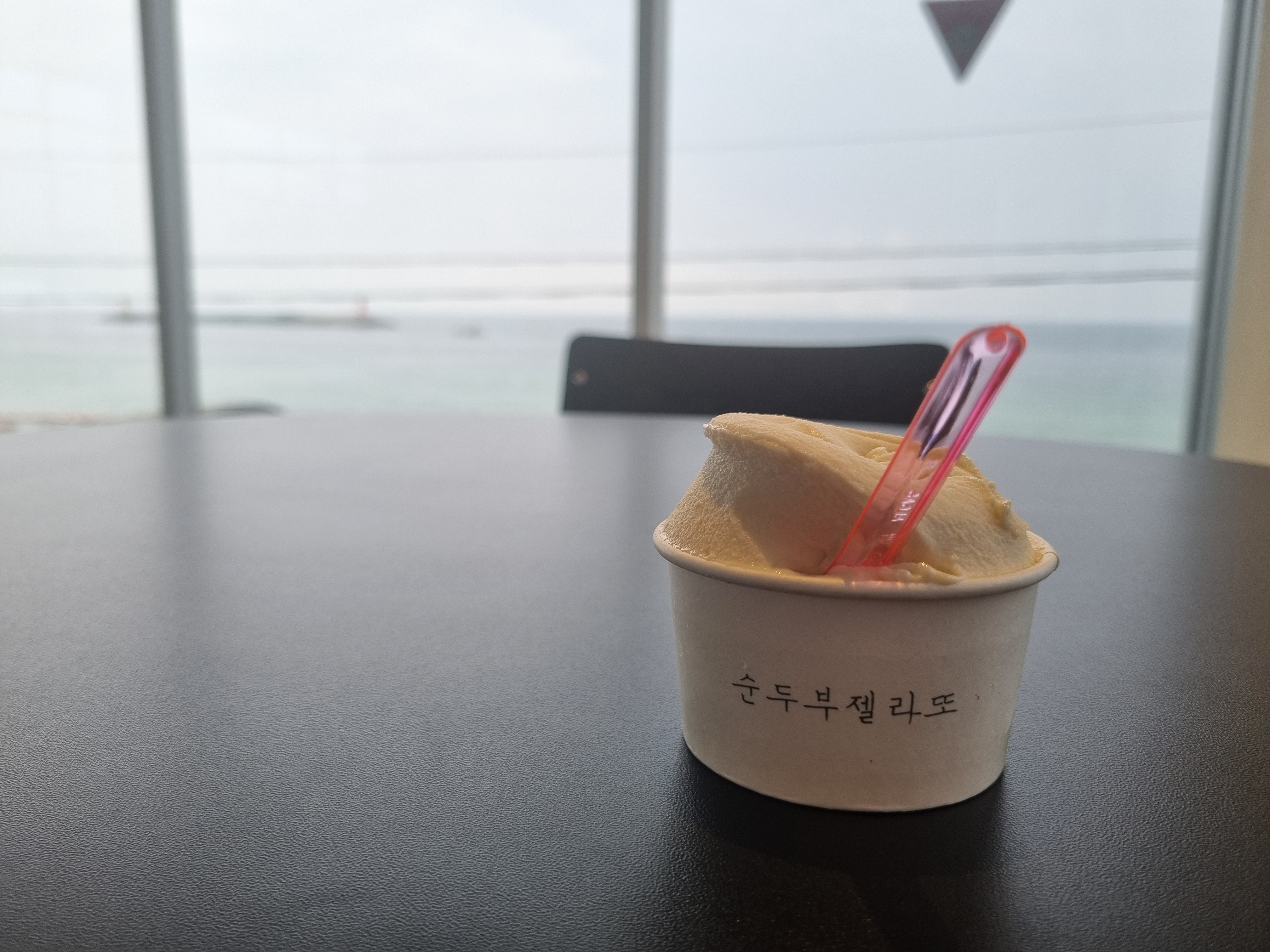 근처에 순두부젤라또가 팔길래 오늘만 아이스크림 두개 클리어 ㅋㅋ