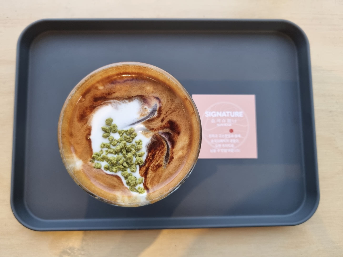 송곡리 카페의 시그니처 메뉴 송곡슈페너를 주문했습니다.