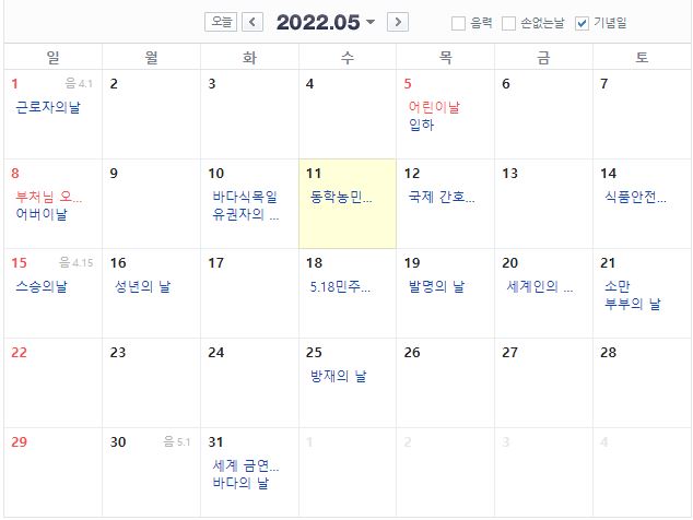 5월 11일(수) - 입양의날, 동학농민혁명 기념일